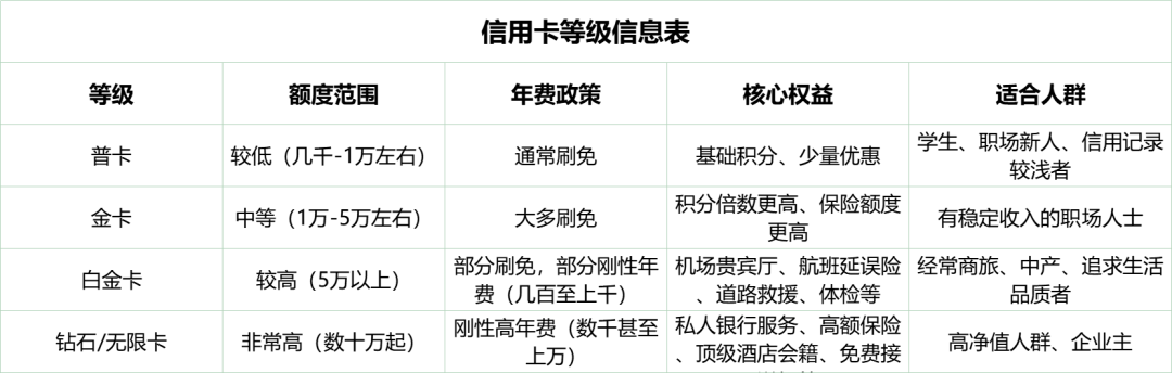 💳 按等级划分:普卡、金卡、白金卡…有什么区别?