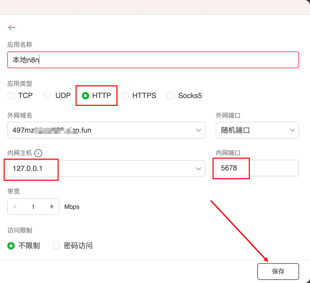 PS:因为这里花生壳给的外网端口是随机的,无法指定5678,所以只能把n8n的端口都改了,改成跟花生壳提供的一致。