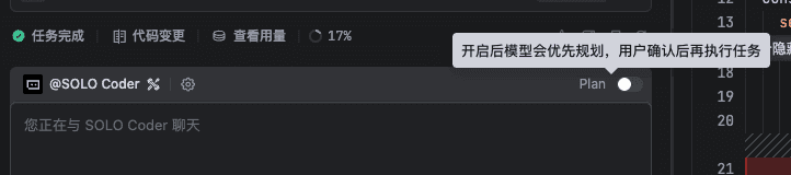 SOLO Coder 支持 Plan 能力,在处理复杂任务时,可以先开启 Plan 再发送指令。AI 会首先生成一份详细的开发计划,你可以充分了解其工作思路和步骤,避免偏离预期。
