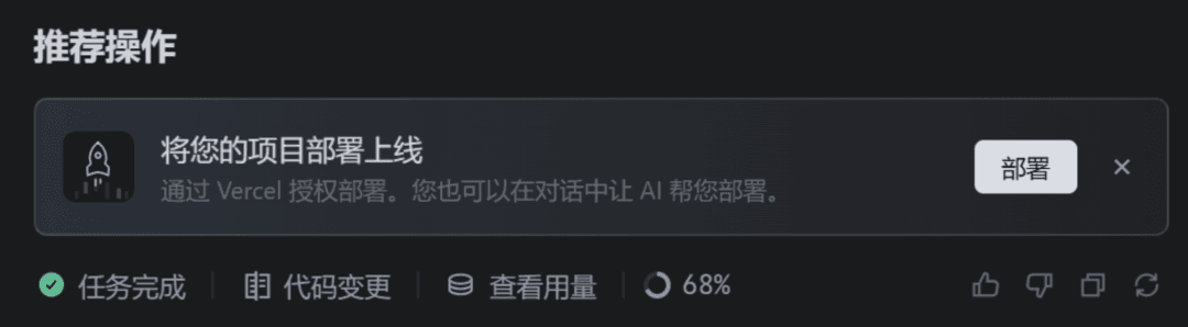 非常适合从0到1的去做一个小项目,能帮你做前端、做后端、自动部署等等,但是这玩意,并不适合后续的迭代和修改,轮数一多,幻觉就上来了,现在很多编程Agent产品都有这个通病。