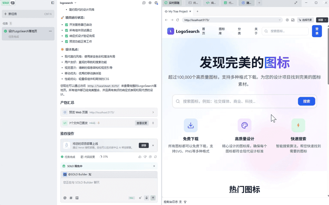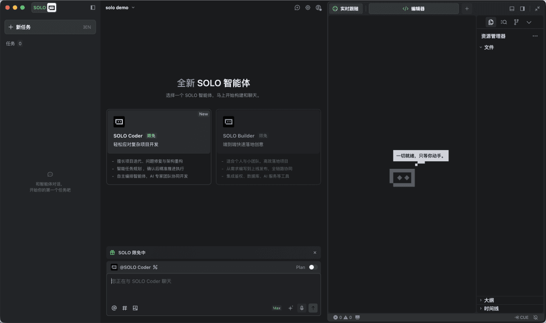 - 通过SOLO Builder和SOLO Coder的组合,实现从0到1的开发和从1到100的迭代。